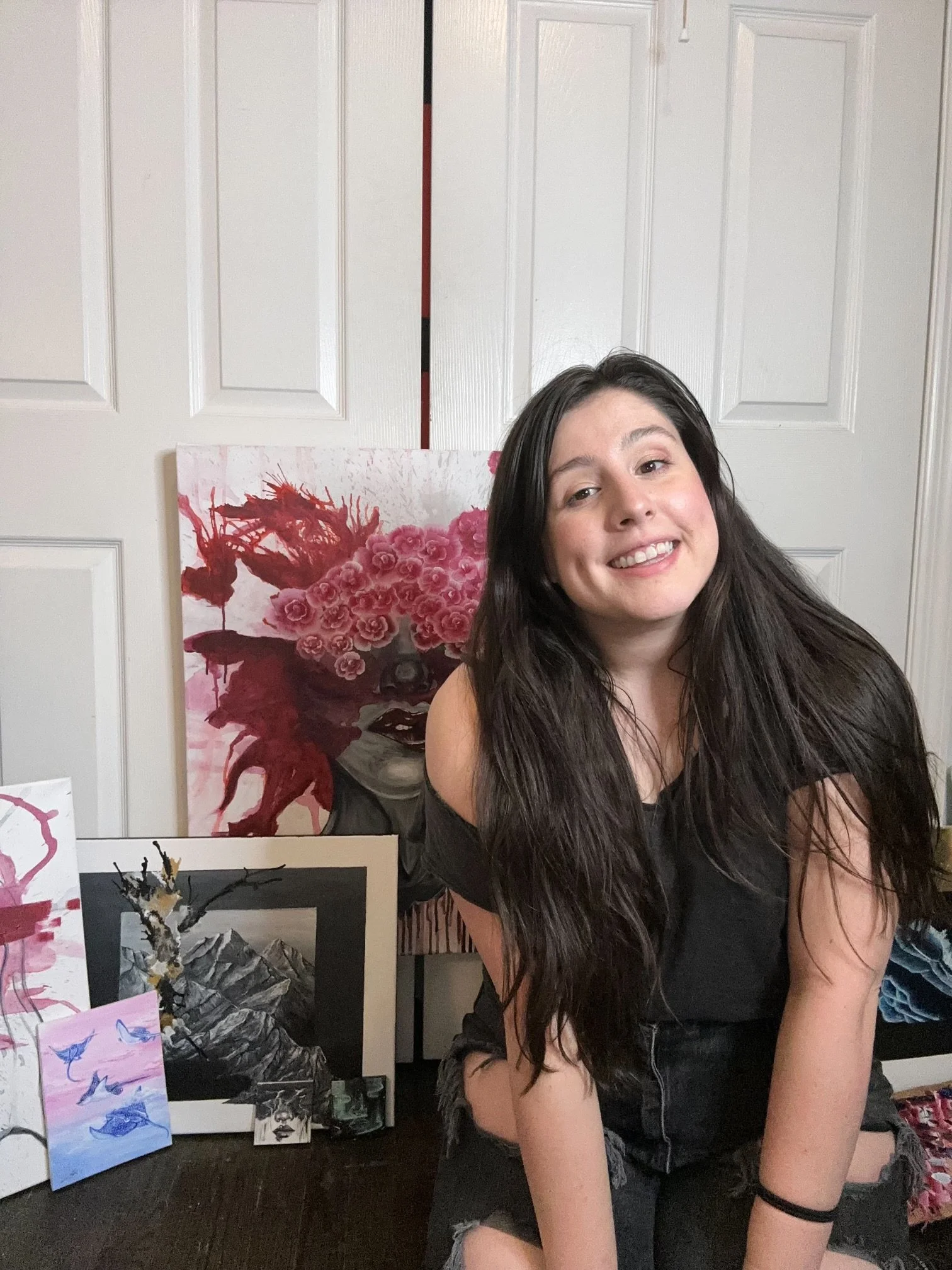 I’ve been an artist for most of my life. I primarily work with pencil, acrylic paints and inks, and charcoal. I love all types of art and tend to be a little chaotic in my style as I paint what I’m feeling in the moment instead of having a particular style. Original artwork for sale currently. Prints coming in the future. I have a form for commissions and will get back to you as soon as I can on rates and information.