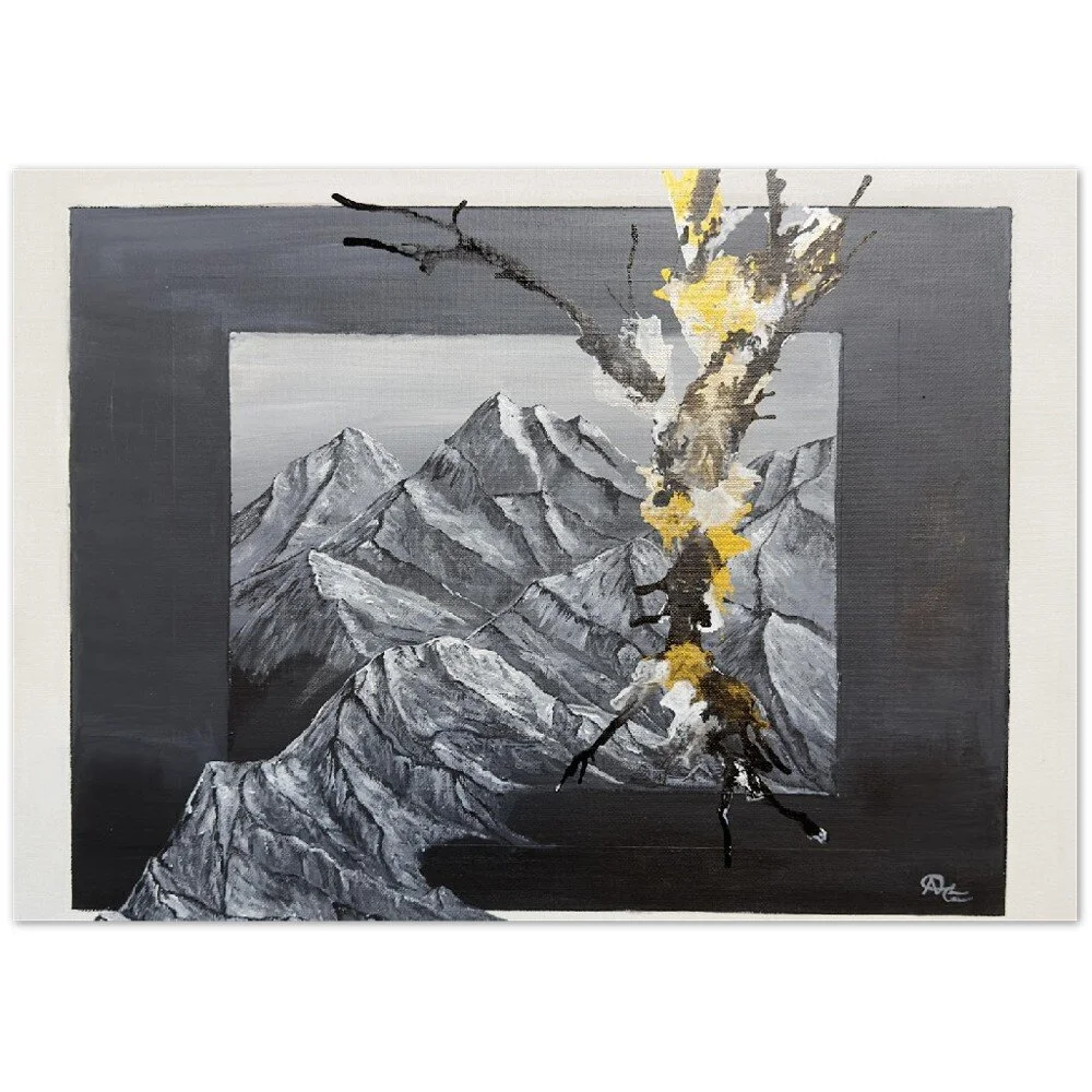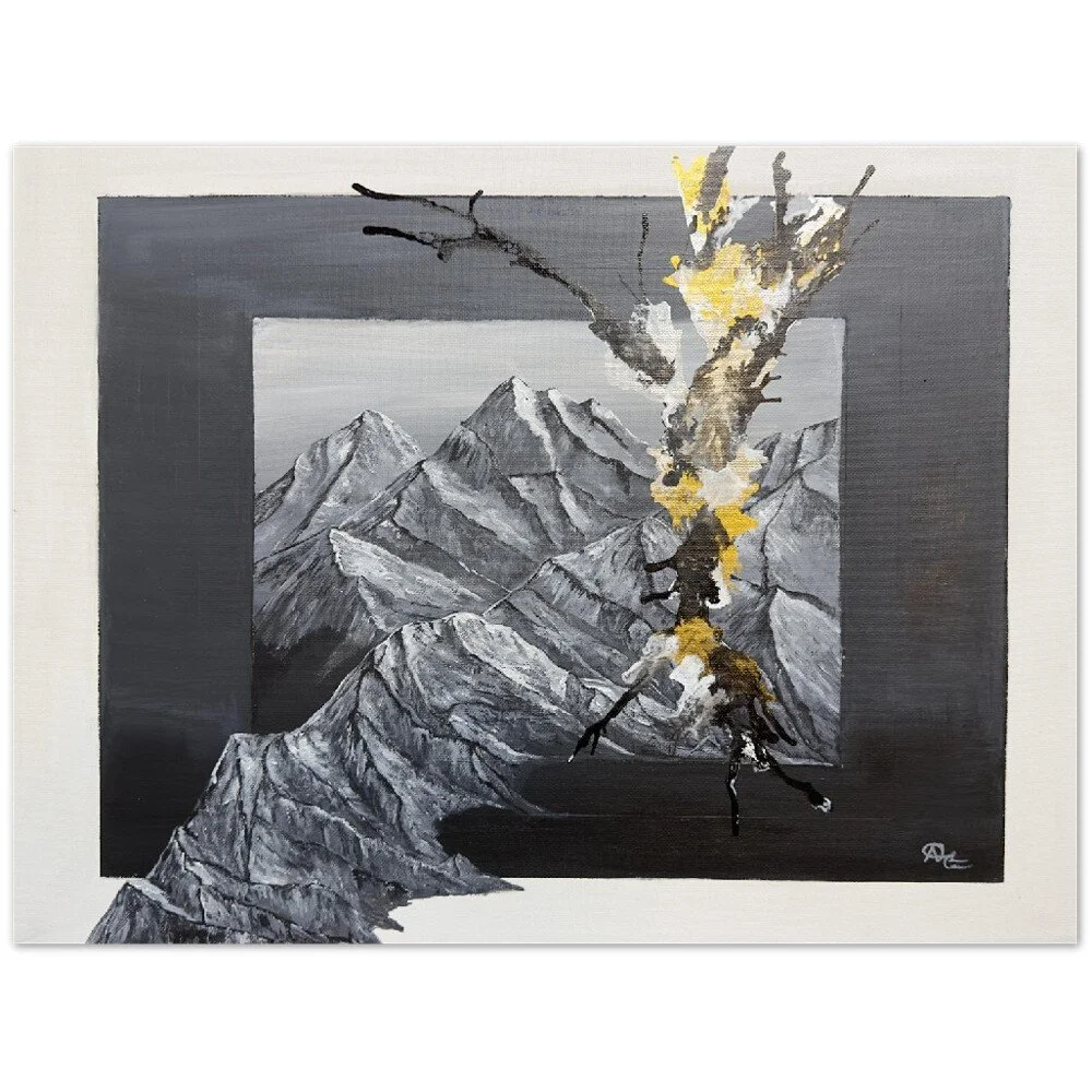 Original Artwork Fever at Flight $1,500.00 Mountains meet Ocean $600.00 Brain Fog $950.00 Thunder $750.00 Champagne Splashes and Shattered Pieces Set $1,000.00 Wine Splashes & Heat Flashes $1,200.00 Floral painting (red gold grey pink) $400.00 Floral painting (Blue grey purple) $400.00 Wine Splashes and Blurry Visions $250.00 Sold out 3D Mountainscape $550.00 Head in the Clouds Set $100.00